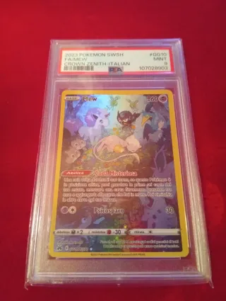 Carta Pokémon Mew FA (Full Art) dall'espansione Crown Zenith, versione italiana, certificata PSA 9 Mint. - Carta: Mew FA - Espansione: Crown Zenith - Lingua: Italiano - Grado PSA: 9 Mint - Codice PSA: 107028903