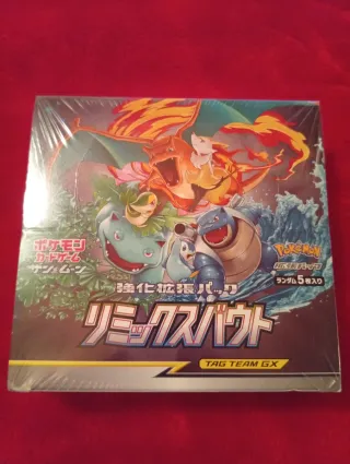 Box di espansione Pokémon Remix Bout in giapponese. - Contiene carte Pokémon. - Edizione Tag Team GX. - Include 5 carte casuali per pacchetto.