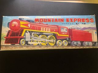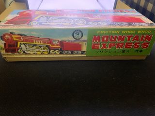 Trenino Mountain Express a frizione, un pezzo vintage da collezione. - Design classico rosso e giallo. - Dettagli fedeli al modello originale. - Ideale per appassionati di modellismo.