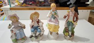 Set di quattro statuine in porcellana, con dettagli dipinti a mano. - Stile vintage. - Ideali per collezionisti o come decorazione.