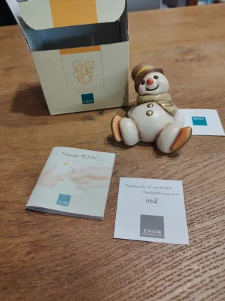 Pupazzo di neve Thun in ceramica, un pezzo vintage da collezione. Completo di scatola originale e certificati. - Design classico Thun. - Dettagli colorati e rifiniti a mano. - Ideale per gli amanti del marchio e del Natale.