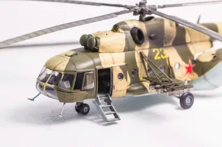 Modellino dell'elicottero Mi-8mt in scala 1/72. - Dettagli accurati. - Marchio Zvezda. NOTA BENE: il modellino sarà confezionato nel modo più scrupoloso possibile, eventualmente concordandolo con l'acquirente. In ogni caso, non posso assumermi alcuna responsabilità in relazione al trasporto effettuato da terzi, una volta consegnato il pacco, in caso di danni. Segnalo, tuttavia, che, ad oggi, nelle precedenti spedizioni, non si sono mai verificati problemi.