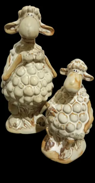 Deliziose pecorelle in ceramica, ottimo stato, perfette, nessun danno. Misure: 22cm.x9cm./16cm.x8cm.