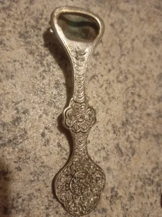 Bellissimo cucchiaino antico in ottone, finemente inciso a mano con dettagli decorativi. OFFERTA LAMPO! - Materiale: Ottone - Decorazione: Incisioni a mano - Pietre: Dettagli in pietra rossa e turchese.