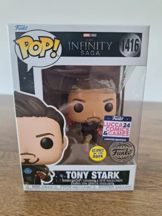 Funko Pop di Tony Stark, numero 1416, edizione speciale per Lucca Comics & Games. La figura glows in the dark. - Personaggio: Tony Stark - Serie: Marvel Studios The Infinity Saga - Numero: 1416 - Edizione: Lucca Comics & Games Limited Edition - Caratteristica: Glows in the Dark