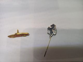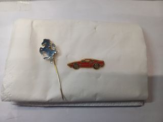 Set di due spille a tema Ferrari. Include la spilla del celebre cavallino rampante e una spilla a forma di auto sportiva rossa. - Spilla cavallino Ferrari - Spilla auto sportiva rossa