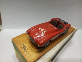 Modellino della Ferrari 340 MM Scuderia Marzotto in scala 1/43. modello da realizzazione kit in metallo, in ottime condizioni come da foto, MANCA vetro anteriore, completo di base artigianale in legno - Colore rosso vivace. - Dettagli fedeli all'originale.