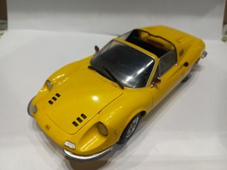 Modellino della Ferrari Dino GTS in scala 1/24. modello da realizzazione kit in plastica , in ottime condizioni come da foto, presenta segni della vernice vicino cofano anteriore - Dettagli fedeli all'originale. - Carrozzeria gialla brillante. - Tetto nero.