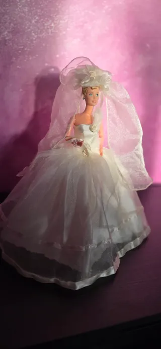 Bellissima Barbie vestita da sposa con un elegante abito bianco e velo.vendo anche solo abito €30 - Abito da sposa in tessuto semitrasparente con dettagli. - Velo lungo e vaporoso. - Dettagli floreali sul corpetto.