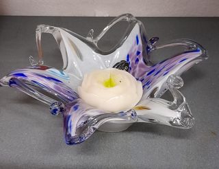 Bellissimo fiore in vetro di Murano, da utilizzare come portacandela o svuota tasche - Realizzato in vetro soffiato. - Decorato con sfumature di blu e viola. - Design a forma di stella.