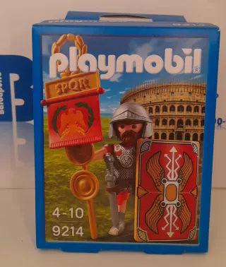 Set Playmobil 9214 con figura de legionario romano. - Incluye estandarte SPQR con águila. - Escudo romano decorado. - Casco y armadura de legionario. - Espada y accesorios.