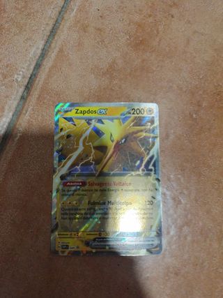 Carta Pokemon originale Zapdos EX, in ottime condizioni e protetta da bustina. - Zapdos EX - Potenza: 200 PS - Abilità: Salvagente Voltaico - Attacco: Fulmine Multicolpo
