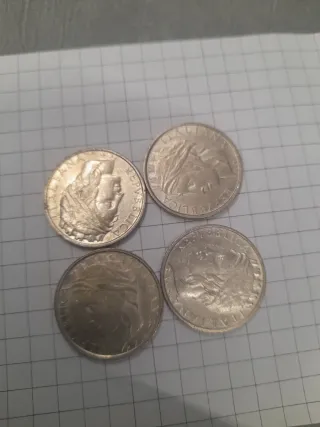 Set di quattro monete antiche di varie nazioni e date, perfette per collezionisti. - Moneta repubblica boliviana Bolivar 1838 - Moneta con aquila United status of america dollar 1804 - Moneta New Zealand Crown 1949. - Moneta sterlina inglese datata 1887.