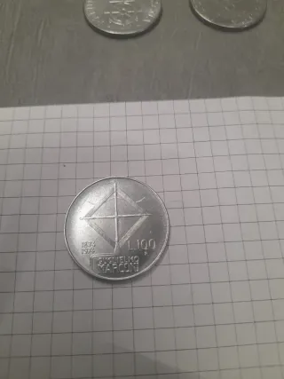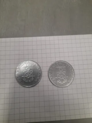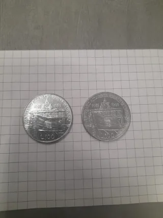 Coppia di monete commemorative da 100 Lire. - Dritto: Accademia Navale di Livorno, 1881-1981. - Rovescio: Stemma della Repubblica Italiana.
