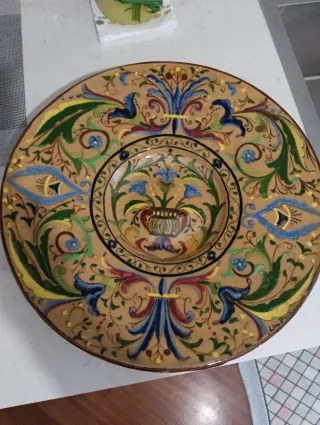 Bellissimo centrotavola artigianale di Lina D'Antonio, interamente dipinto a mano con motivi floreali e decorazioni elaborate. - Design unico e colorato. - Perfetto come pezzo decorativo per la casa. Può essere utilizzato sia come centrotavola o appeso alla parete perché ha già la predisposizione. - Firma dell'artista visibile sul bordo.