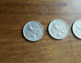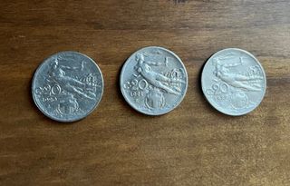 Lotto composto da tre monete da 20 centesimi del Regno d'Italia. monete antiche - Monete coniate nel Regno d'Italia. - Valore nominale di 20 centesimi. - Anni visibili: 1920, 1921, 1922 condizioni SPL / qFDC