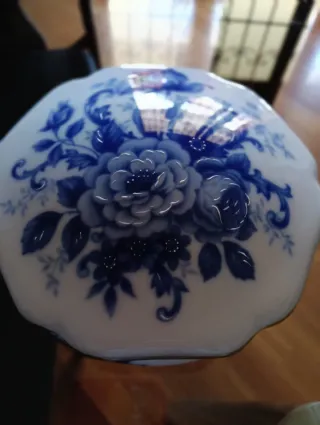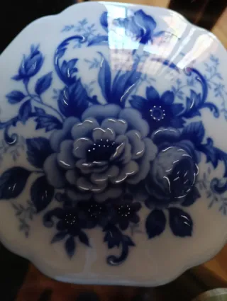 Elegante portagioie in porcellana Limoges, Francia, con decorazioni floreali blu. - Design classico con bordo ondulato. - Motivo floreale dipinto a mano. - Marchio Limoges France inciso.