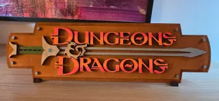 Insegna decorativa a tema Dungeons & Dragons. - Realizzata in legno. - Dipinta a mano con dettagli colorati. - Design con spada e logo del drago. - Se non trovi il prodotto che fa per te o vorresti qualcosa di diverso non esitare a contattarmi!!