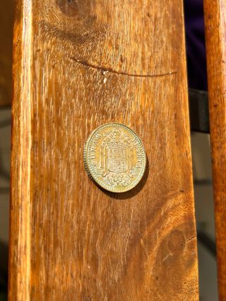 Moneta da una peseta spagnola. - Dettaglio dello stemma nazionale. - Bordo con perline. Accetto offerte # collezionismo, argento, regno, italia, scudoni, duros, argento 999, FDC, monedas, Plata, silver, Usa, dollar, Morgan, Liberty, dime, quarter, san marino, regno d'italia, lire, lira, pre euro, pesetas, vittorio em