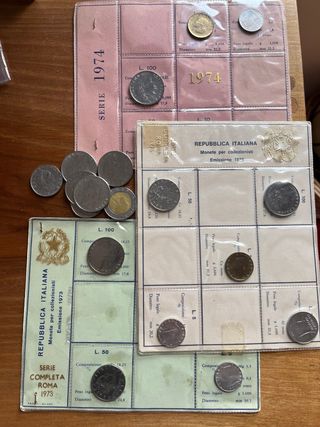 Lotto di monete della Repubblica Italiana, con serie complete fior di conio - Serie completa Roma 1973. - Serie completa Roma 1974. - Monete da 100 Lire, 50 Lire e 5 Lire. - Monete per collezionisti.
