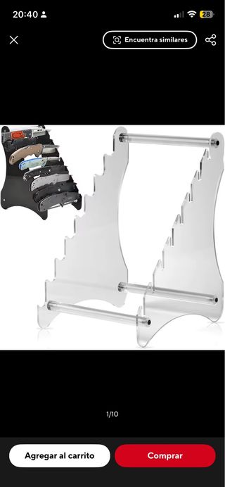 Set di 7 espositori per coltelli in miniatura. Ideali per collezionisti e esposizione. - Base metallica con design. - Supporto verticale 11 cm di altezza. - Articoli nuovi provenienti da stock di magazzino della negozio. Spedizioni Wallapop.