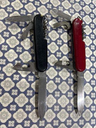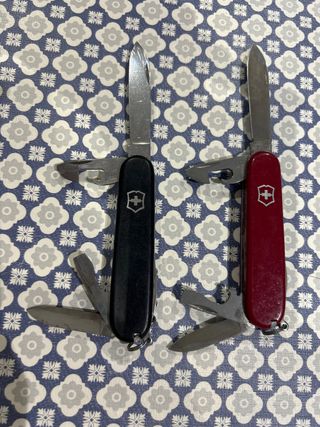 In vendita due coltelli Victorinox, uno di colore nero e l'altro rosso. Devono essere lubrificati.