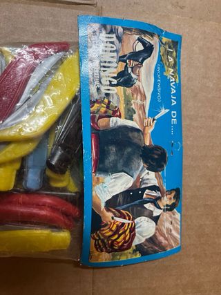 Borsa di 30 coltelli giocattoli La Navaja di Domingo di antica giocatteria. Design ispirato a Curro Jiménez. Colori vari: rosso, giallo, verde, blu, marrone e nero. Imballaggio originale.