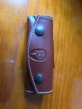 Fodero in pelle per coltelli del marchio Muela. Progettato per proteggere e trasportare i tuoi coltelli fino a 11 cm di lunghezza, chiuso in modo sicuro in posizione orizzontale. Materiale: pelle di alta qualità marrone. Chiusura con fermagli. Logo Muela inciso. (19)
