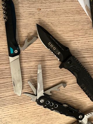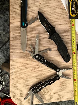 Si tratta di una collezione di 3 coltelli/multiuso in ottimo stato, tutti completamente nuovi e inutilizzati. Composta da: 1 coltello micologico nuovo, 1 coltello micro/mini nuovo, 1 coltello/multiuso tipo svizzero rosso 13 in 1 nuovo. Perfetto per sopravvivenza, bushcraft, EDC, ecc. Tag di ricerca: Victorinox, Leatherman, Dakoyu, Gerber, Coltello, Bibury, Tattico, Soccorso,...