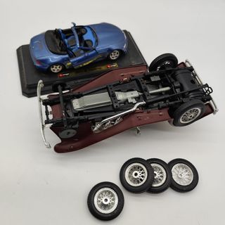 Due modellini di auto Burago, uno in scala 1:18 e uno in scala 1:24, ideali per pezzi di ricambio o per appassionati. - Modello 1: Scala 1:18 - Modello 2: Scala 1:24