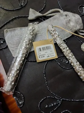 Elegante set di due penne argentate, impreziosite da strass scintillanti. Un tocco di classe per la tua scrittura. - Design decorato con strass. - Finitura argentata. - Marca: Coin.