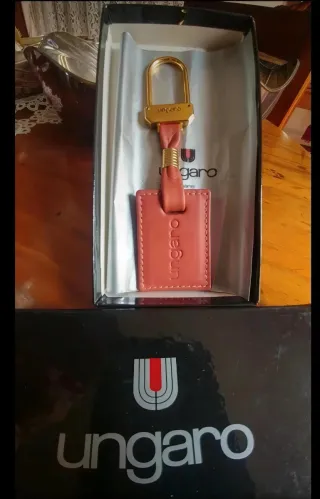 Portachiavi originale della marca Ungaro, realizzato in pelle. - Dettaglio in metallo dorato. - Cuciture a vista. - Design elegante.