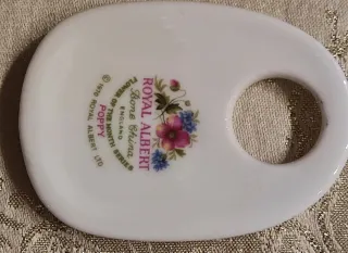 Nuovo portachiavi in ceramica bianca decorata. Mese di agosto Marca Royal Albert