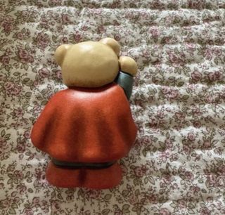 Orsetto Thun in ceramica, vestito da supereroe con mantello rosso e la lettera T sul petto. - Dettagli dipinti a mano. - Base in ceramica. - Design giocoso e colorato.