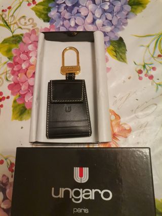 Portachiavi marrone a forma di piccola borsa con mollettone in metallo dorato marca Ungaro