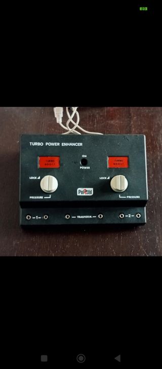 Unità di controllo Polistil Turbo Power Enhancer. - Pannello frontale nero. - Due indicatori luminosi TURBO BOOST. - Due manopole LOCK e PRESSURE. - Connessioni 0-1-0, TRASFORM. e 0-2-0.