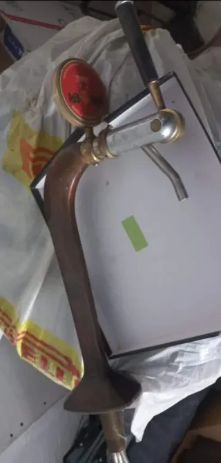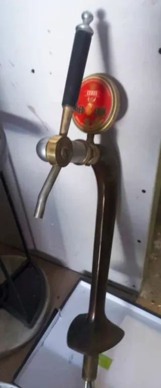 Spillatore per birra Vintage con rubinetto e maniglia. Presenta un distintivo Red Erik circolare. Ceres - Materiale: Rame e ottone ,quasi tutto in rame . - Colore: finitura bronzo rame e maniglia nera. Misure 60 x 30 centimetri +/-.