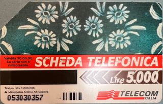 Scheda telefonica SMAU, 33ª edizione del 1996. - Design con blocchi di colore. - Logo Telecom Italia.