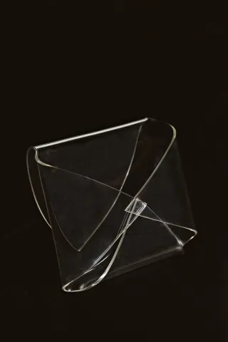 Porta posta da tavolo a forma di busta in plexiglass, risalente agli anni '70. Largh. 22 cm H 17 cm Prof. 13 cm