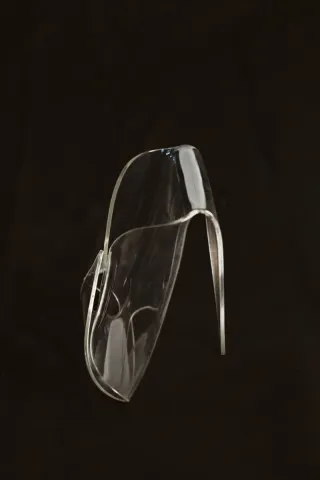 Scultura moderna Silenzio con finitura argentata, ideale per arredare con stile. Possibile utilizzo alternativo come porta occhiali - Design astratto. - Base nera. Dimensioni 15x15x30 h.