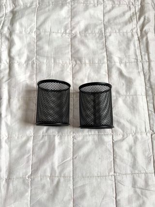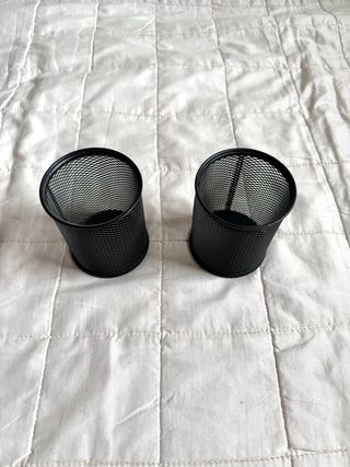 Set di due porta penne in rete metallica nera. Perfetti per organizzare la scrivania. - Materiale: rete metallica - Colore: nero - Design: cilindrico Set di 2 Portapenne in metallo da scrivania per riporre la cancelleria. Aiuta a mantenere in ordine la postazione di lavoro Gli speciali piedini in gomma sul fondo proteggono la scrivania da graffi All’interno, un rivestimento in spugna protegge gli oggetti inseriti da possibili danni. Realizzato in rete metallica nera. 🖤 Accetto offerte ✅🍀 #portapenne #portabiro #portapennenero #penne #scrivania #office #vintedgermany #penholder #portapennescrivania #portapennemetallica