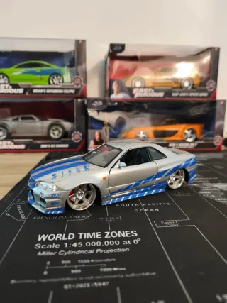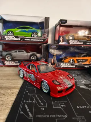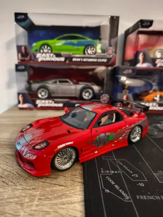 Set di 4 modellini di auto della saga Fast & Furious. - Mitsubishi Eclipse di Brian - Toyota Supra di Slap Jack - Dodge Charger di Dom - Mazda RX-7 di Han