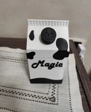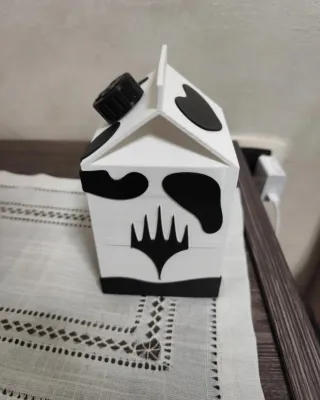 Deckbox per carte da gioco stampato in 3D, con un originale design a forma di cartone del latte. Life counter integrato Tappi intercambiabili