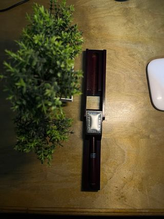 Vendo elegante set scrittura del marchio italiano Seven Argenti. Il set comprende una penna a sfera con corpo in legno scuro (color mogano/bordeaux) e il suo astuccio/fanale rigido coordinato che funge anche da portapenne da scrivania. Caratteristiche: • Marca: Seven Argenti. • Materiale: Legno e dettagli in metallo cromato. • Dettaglio Prezioso: Sull'astuccio è presente una placca rettangolare in argento laminato (punzonata "Lam. Ag"). • Confezione: Include la scatola originale in cartone verde firmata Seven Argenti.