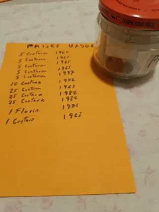 Lotto di monete antiche e barattolo