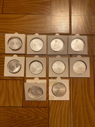 Set di monete prova da 500 pesetas della Fabbrica Nazionale di Moneta e Timbro. Include diverse monete prova. Presentate in custodie protettive. Scambio con monete d'argento o vendo per 80€ (solo per le due monete d'argento il valore al peso è 60€)