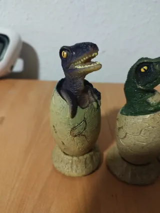 Due figure di dinosauri dagli uova Kinder Sorpresa. Ideali per collezionare o giocare. - Figura di dinosauro arancione (Pterodattilo). - Figura di dinosauro blu (Plesiosaurio). - Include due uova di plastica arancioni.