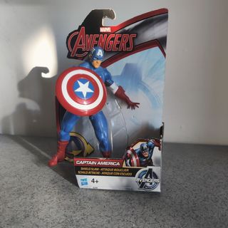 L'immagine mostra un'action figure di Captain America della serie Marvel Avengers, prodotta da Hasbro. Prodotto: Action figure di Captain America della serie Marvel Avengers Titan Hero. Caratteristiche: La figura include lo scudo iconico di Captain America e fa parte della linea "Shield Slam!". ✓Misure in foto ✓Spedizione veloce e accurata