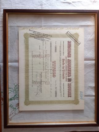 Certificato azione Riunione Adriatica di Sicurta' anno 1947 dim.37x29 cornice 53x43