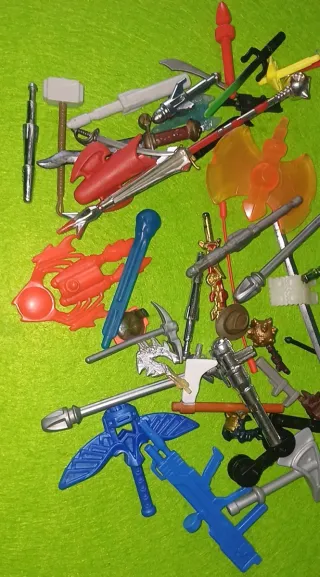 Ampio lotto di accessori per action figure, ideale per espandere la tua collezione. - Variegata selezione di armi e strumenti. - Componenti colorati e dettagliati. - Perfetto per personalizzare le tue figure.